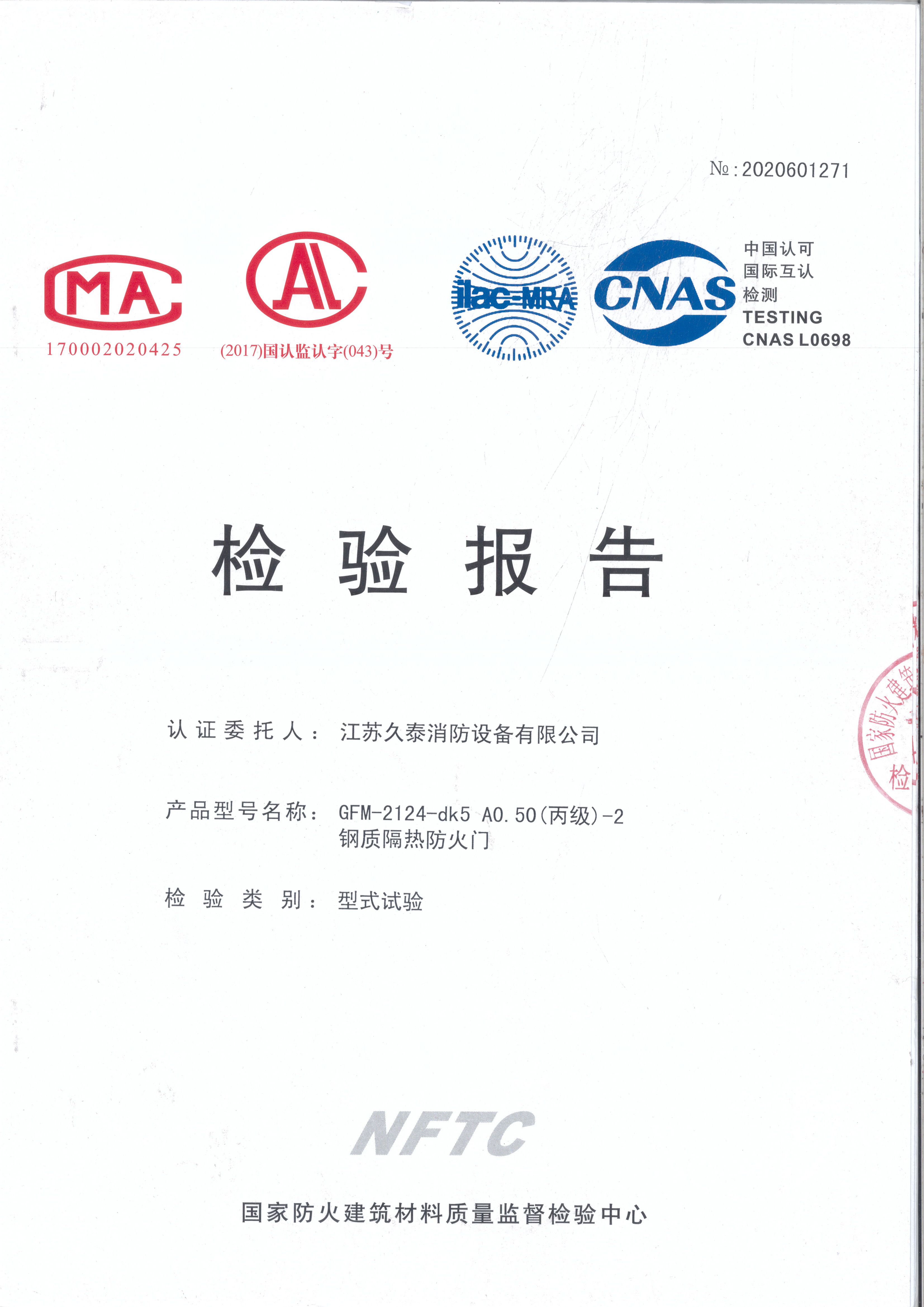 丙级-2钢质隔热防火门检验报告