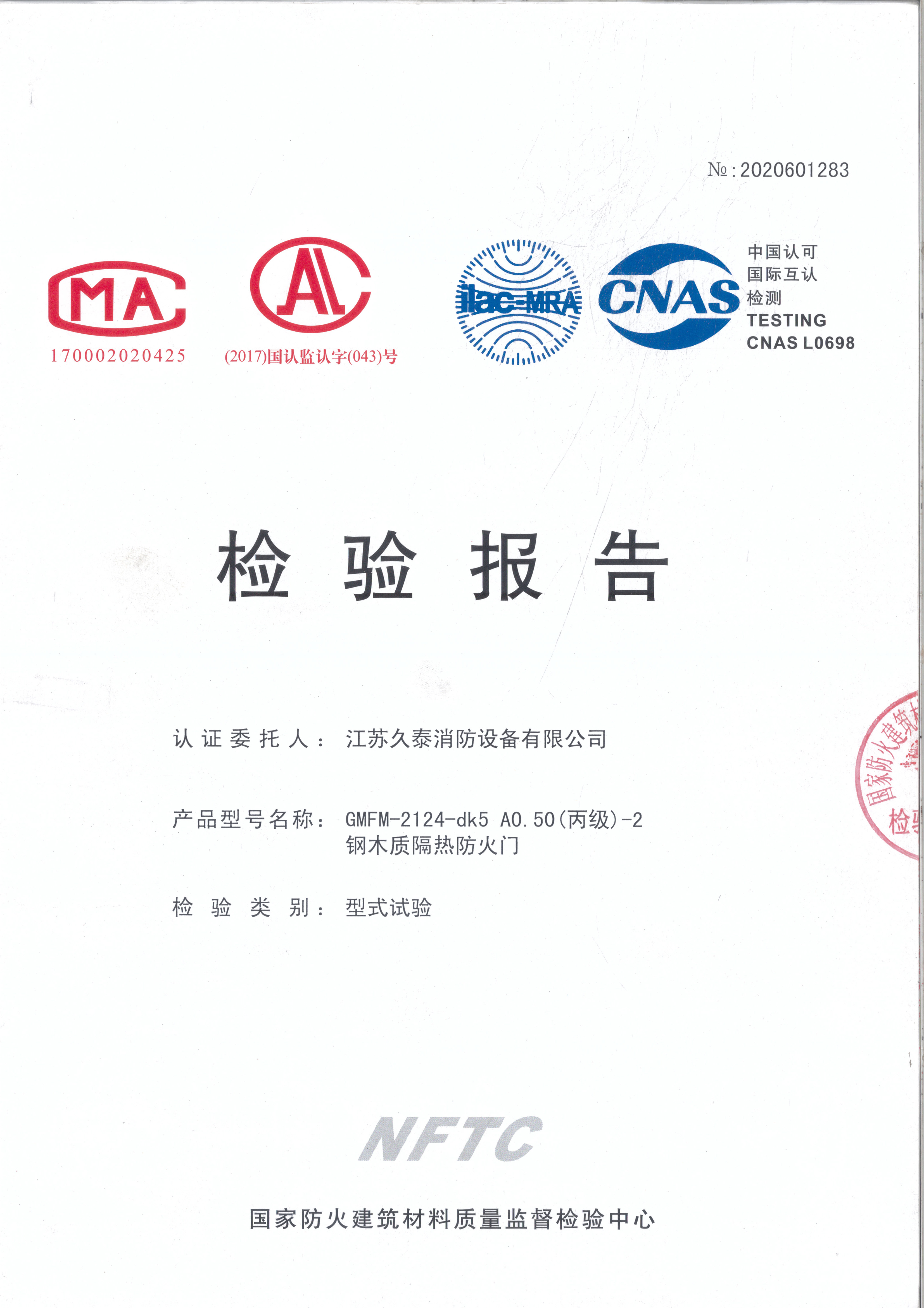 丙级-2钢木质隔热防火门检验报告